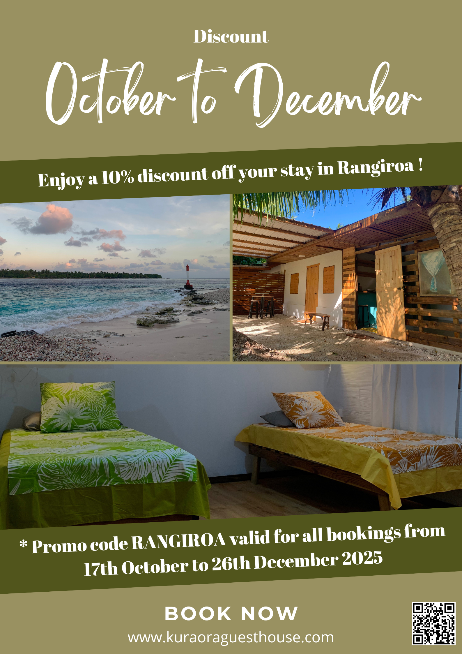 Book now with our promo code RANGIROA and enjoy your stay at a reduced price!
